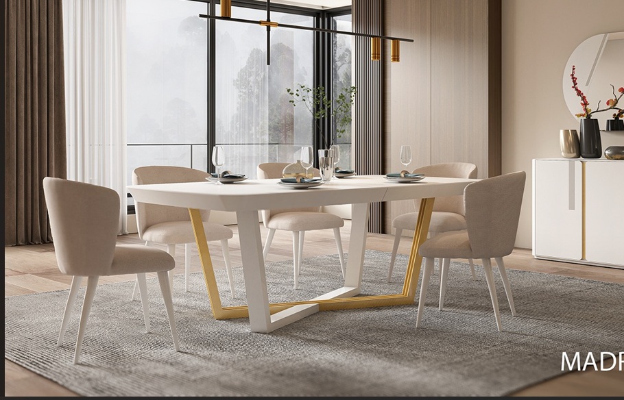 MESA SALA JANTAR LINHA MADRID - BRANCO/DOURADO